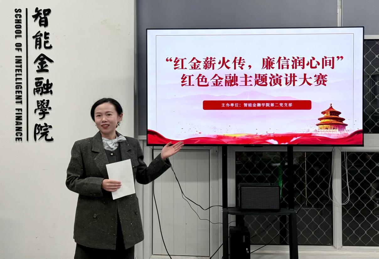 活动尾声,智能金融学院分党委副书记刘秀发表总结讲话。她指出,红色金融是中国共产党领导金融事业的宝贵精神财富,而清廉金融则是新时代金融事业行稳致远的重要保障,关乎行业形象与社会信任。她强调,智能金融学院作为培养金融人才的重要阵地,始终将“红色育人”“廉洁育人”融入人才培养全过程,本次演讲大赛既是对红色金融精神的生动传承,也是对清廉金融理念的深入普及。