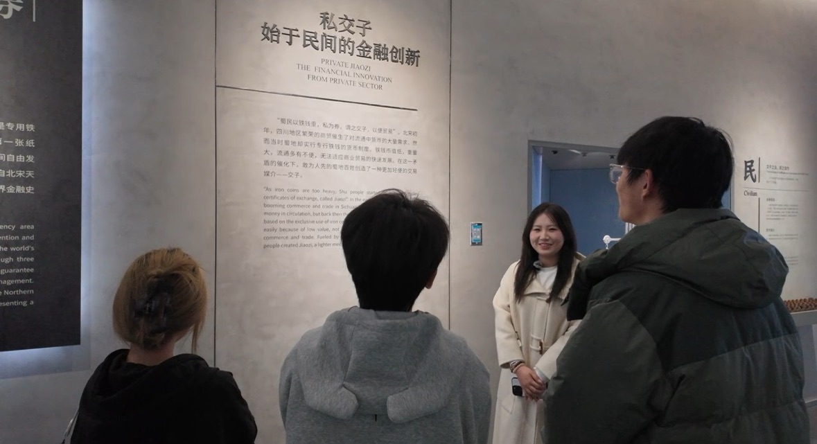 成都交子金融博物馆作为全国首家交子主题国有行业博物馆,兼具文化传播与金融教育功能,是传承金融文化的重要平台。参观现场,学院师生在廉烁扬的引导下,走进“交子诞生”“货币演变”“金融文明”核心展厅,通过文物观摩、场景复原、多媒体演示,深入了解交子演变历程与历史意义。期间,师生参与“定制专属交子”、“铜钱兑飞钱”等互动项目,通过亲身体验,直观理解了金融信用的核心作用,深化了对金融工具创新的认识。