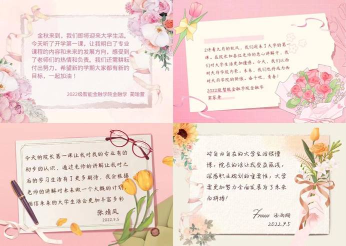 线上教学第一周的首天,由智能金融学院副院长陈蔚、陈娴进行“院长第一课”主题讲座,分别从专业特色、升学就业问题、学院特色讲坛、金融学CFA方向班、社会实践等问题展开详细介绍,多维度帮助新生融入大学生活、适应大学生身份。课堂上同学们积极参与互动,课后还分享了自己的心得体会,言语间尽是对大学生活的期待。