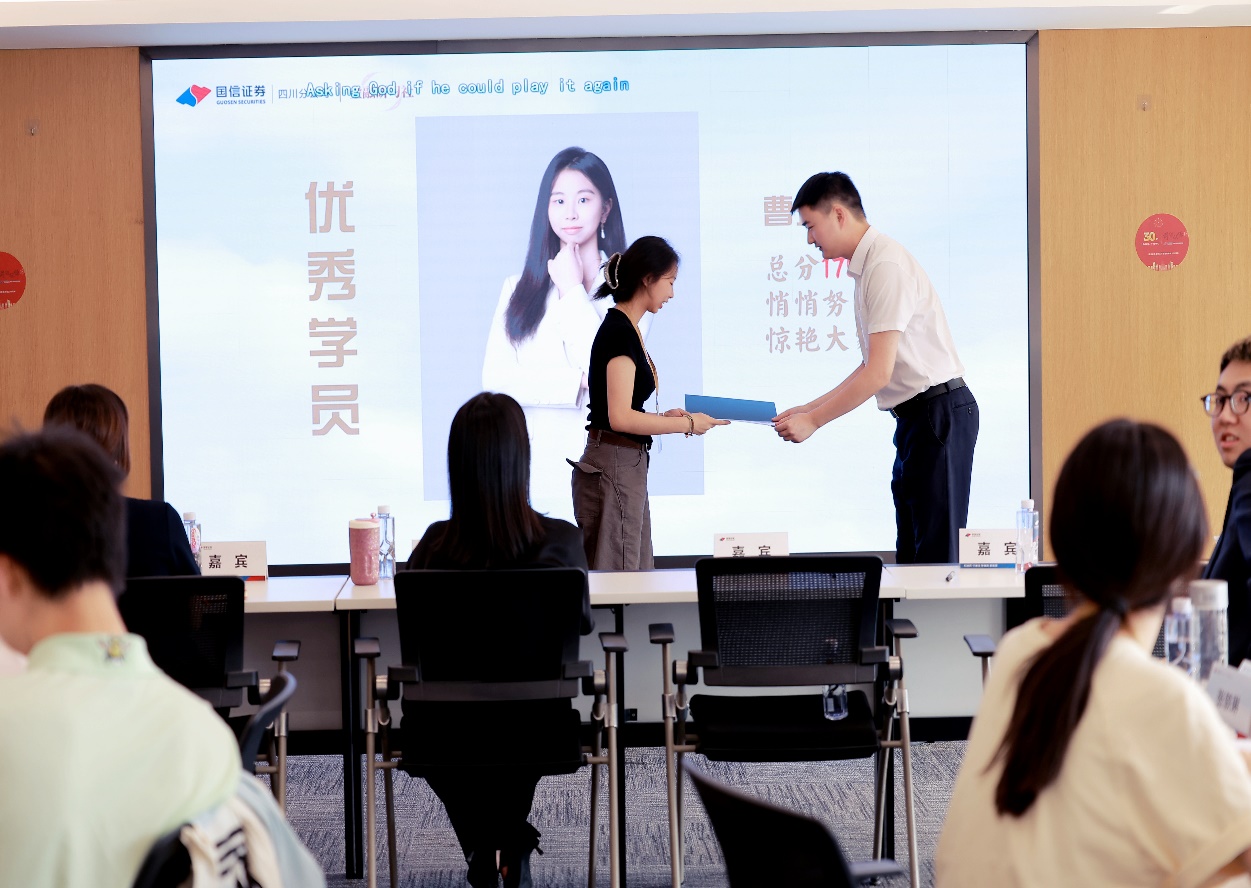 活动最后一天,学员们前往北交所(西部基地)外出研学直观了解北交所的业务模式和发展情况。研学归来,各小组结合所学,分别展示了对所学知识的运用成果。同时,学员们还完成了结训作业,以此检验在活动中的学习成果。其中,由陈浩霖为组长的第二组获得优秀小组,曹瑜敏获得优秀学员称号。