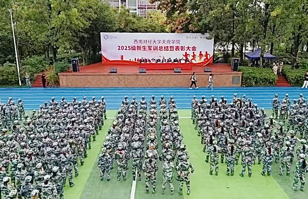 十月秋阳铺洒校园,迷彩方阵点亮训练场。10月24日上午,西南财经大学天府学院2025级新生军训总结暨表彰大会在田径场隆重举行。历经14天的烈日炙烤与风雨磨砺,全体新生以挺拔的军姿、昂扬的斗志完成了各项训练科目,为这场青春的“淬火之旅”画上圆满句号,更以坚韧身姿诠释了天府学子的初心与担当。