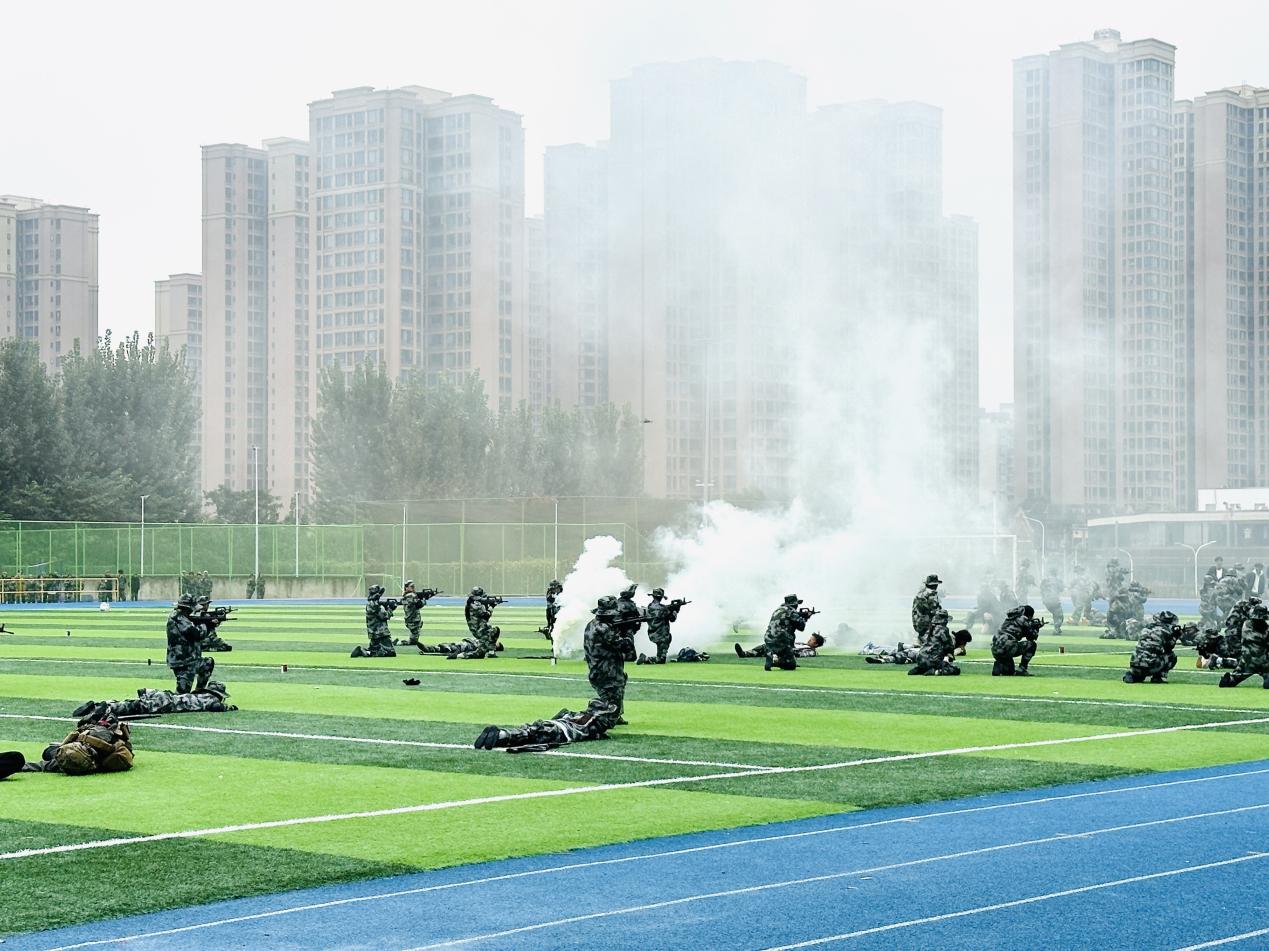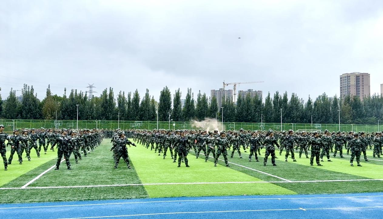 当天上午,新生们以最饱满的精神状态集结就位。国歌声响起,全体师生肃立行注目礼,大会序幕正式拉开。分列式环节,各新生方队依次迈着铿锵步伐走过主席台:步点与军乐精准合拍,正步落地的声响震彻全场,迷彩身影如松般挺拔,昂扬的精神面貌赢得了主席台上阵阵掌声。