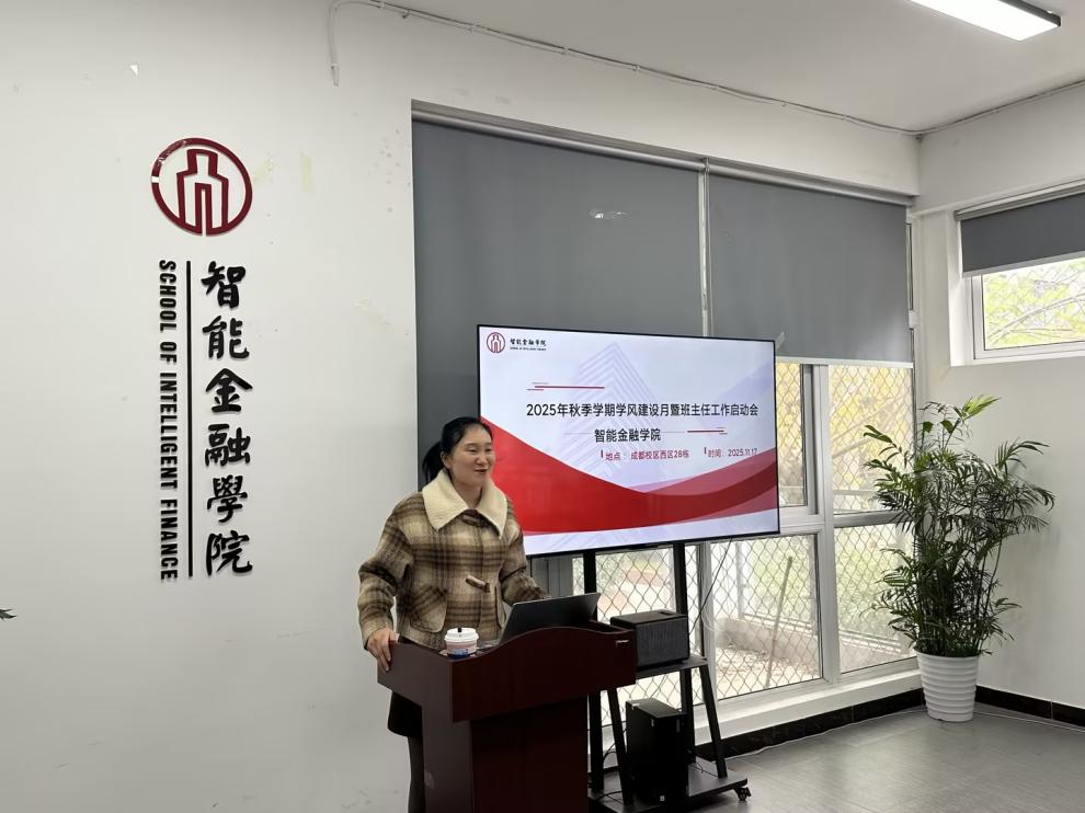 为扎实推进班级建设与学风培育,明确班主任工作方向与重点,11月17日,西南财经大学天府学院智能金融学院在成都校区西区28栋1楼开展2025年秋季学期学风建设月暨班主任工作启动会。学院分党委副书记罗婷、全体班主任及辅导员共同参加,学院学生工作办公室主任郑艳主持会议。