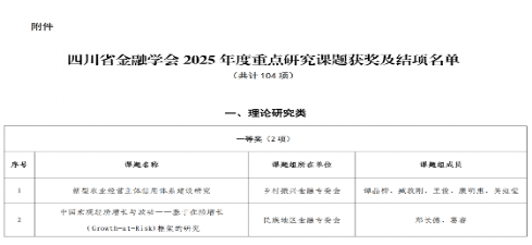 四川省金融学会2025年重点研究课题评审结果通报文件