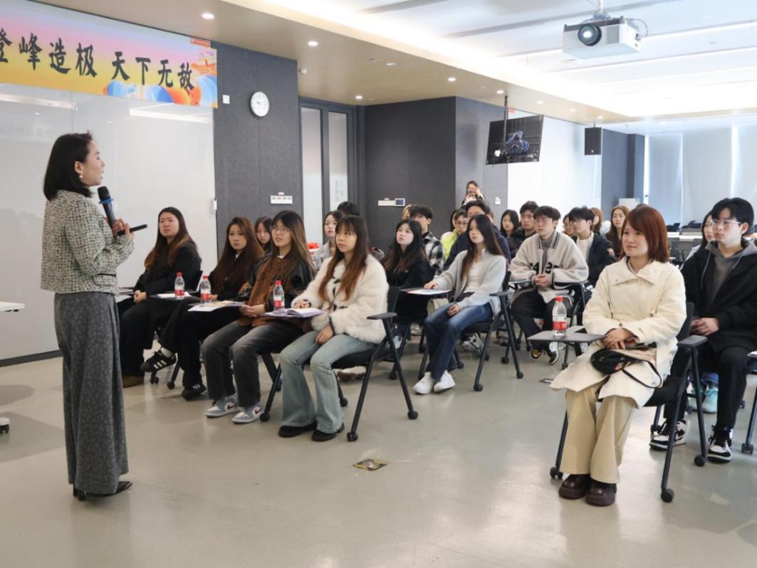 活动伊始,阿里巴巴创外荟总经理刘林林带来“AI+外贸趋势”专题讲座。她深入剖析了人工智能对全球贸易生态的重塑作用,从智能选品到跨境供应链优化,全方位讲解了AI在外贸全链条的应用前景。同时强调,数字化转型背景下,兼具国际贸易规则知识与数字技术能力的复合型人才,已成为外贸企业的核心竞争力。鲜活又贴合实际的讲座案例,让同学们对未来职业方向有了更清晰的认知。