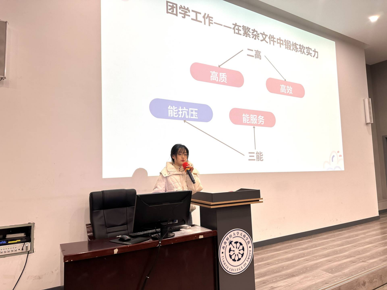 12月15日,智能金融学院团总支、学生会在成都校区(东区)138教室举办“学姐归来”考研专题分享会。活动特邀优秀往届毕业生戴怡婧、李婧怡返校,围绕考研规划、备考策略与心态调整等主题进行深度分享,为有志升学的学子提供了精准而实用的指导。