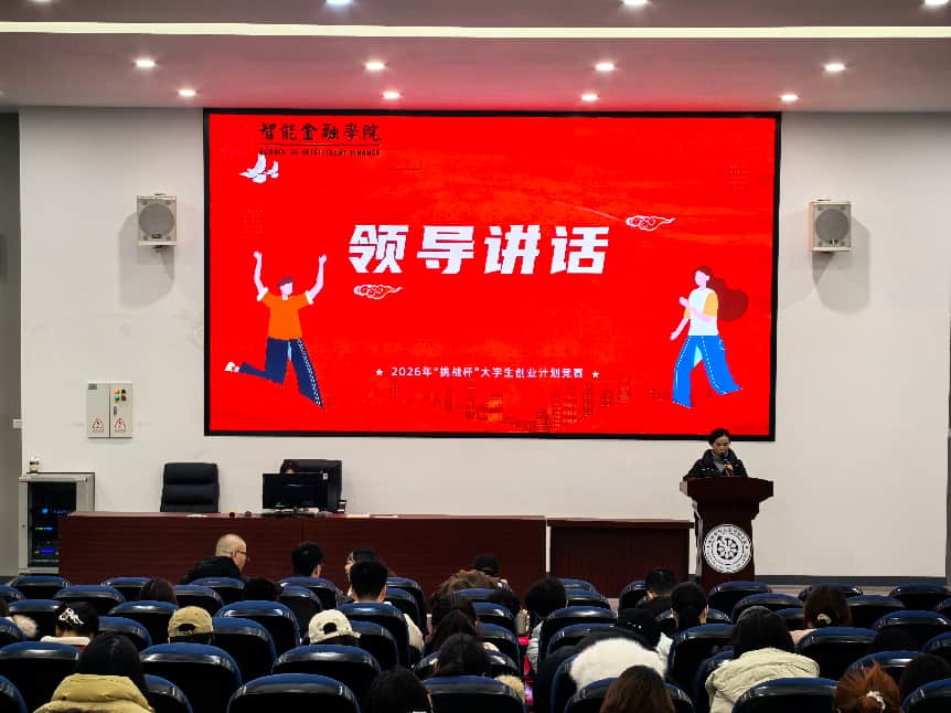 为表彰创新创业先进典型,激发青年学子创新热情,12月29日,智能金融学院2026年“挑战杯”大学生创业计划竞赛院赛颁奖典礼在成都校区(东区)238教室顺利举行。学院分党委副书记刘秀、副院长陈娴、第一党支部书记刘佳、经济系主任丁文将、科创中心副主任田睿出席典礼并担任颁奖嘉宾,全体参赛队伍和部分学生代表共同参与。