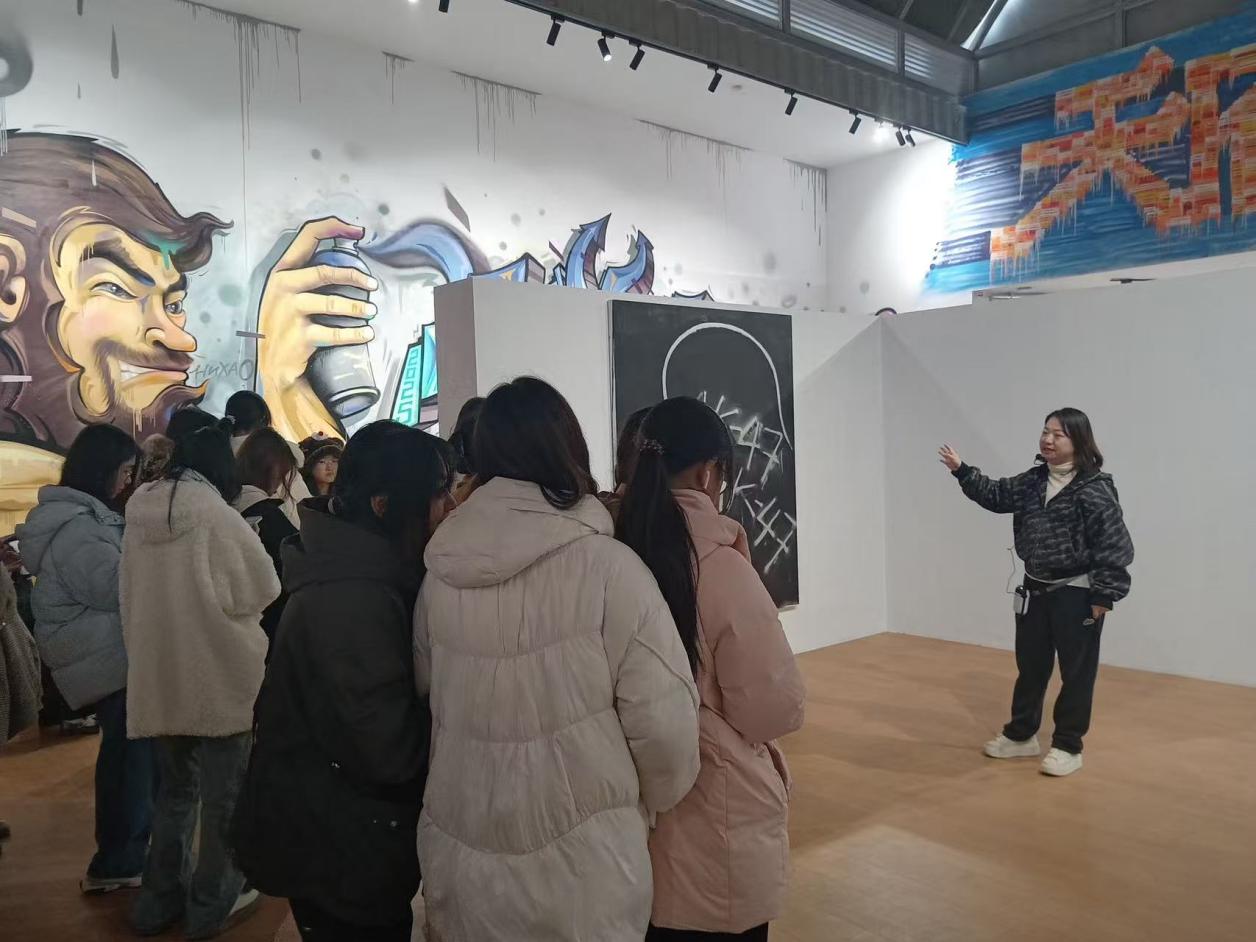 本次活动以“金融与艺术的跨学科对话”为核心,组织学子走进学校美术馆,参观“第三届国际涂鸦·街画年度展——释放的描绘”。首场活动由胡译文带队,艺术与传媒学院林珂老师担任导览讲解。在涂鸦展参观环节,林珂结合作品的色彩搭配、构图设计与创作理念展开细致解读,并特别结合智能金融专业特色,从创意表达的多元路径、风险意识的隐性呈现等维度深入剖析,引导学子探寻艺术创作中蕴含的创新思维与金融决策的共通之处。后续场次中,刘海燕、张淑美、郑艳三位辅导员分别带队参与,全程陪同学子观展交流。刘海燕结合自身学生工作经验,引导大家从“团队协作”视角解读涂鸦作品中多人共创的创作逻辑,关联金融项目中跨部门协作的重要性;张淑美聚焦作品的“创意落地”过程,类比金融产品从构思到推向市场的全流程,帮助学子理解“创新”与“务实”的平衡之道;郑艳则鼓励学子结合观展感受,分享对“金融美学”的理解,将艺术熏陶转化为专业学习的灵感,让每场活动都形成独特的学习亮点。