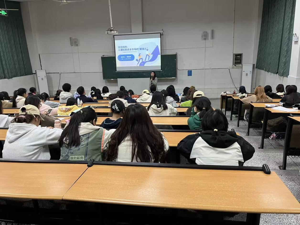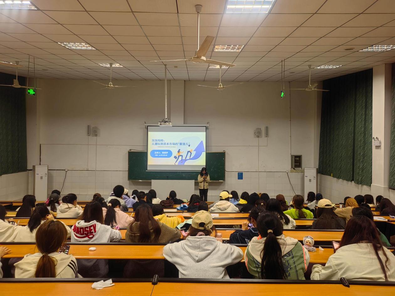 讲座中,陈柔伊围绕泡泡玛特的成长轨迹展开深度解析,从企业初创期的潮玩品类探索,到逐步构建“IP孵化-产品开发-全渠道销售”的商业模式,清晰呈现其从单一潮玩品牌向资本市场关注焦点的蜕变过程。她结合具体财务数据与市场案例,指出泡泡玛特通过精准定位年轻消费群体、强化IP资产运营,实现了营收与市场估值的双重突破,同时也客观分析了企业在IP依赖度、海外市场拓展等方面面临的挑战。她强调,在“情绪经济”与“文化消费”崛起的背景下,潮玩行业的金融属性正逐步凸显,既为消费市场注入新活力,也为金融专业学生提供了跨领域研究与实践的新方向。